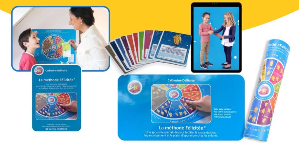 Recevez le Coffret Félicitée avec tout le matériel à la maison et profitez de la formation en ligne pour apprendre les outils de la méthode en toute simplicité